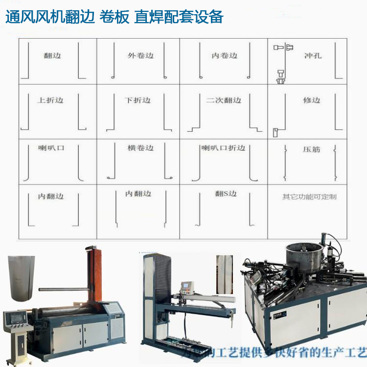 通(tong)風風機筒成(chéng)型配套設備(bèi) 卷闆 直焊 翻(fan)邊沖孔